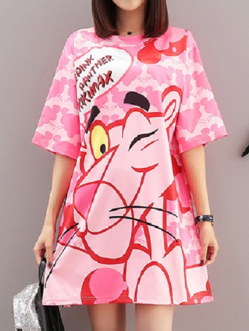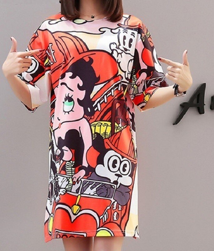 Vestido feminino adorável com estampa de banda desenhada.