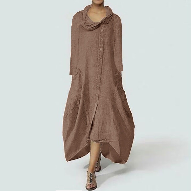 Vestido feminino leve e solto com mangas longas.