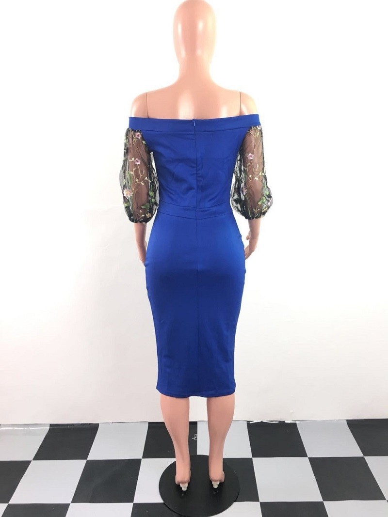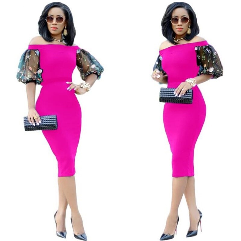 Elegante vestido justo feminino com ombros caídos.
