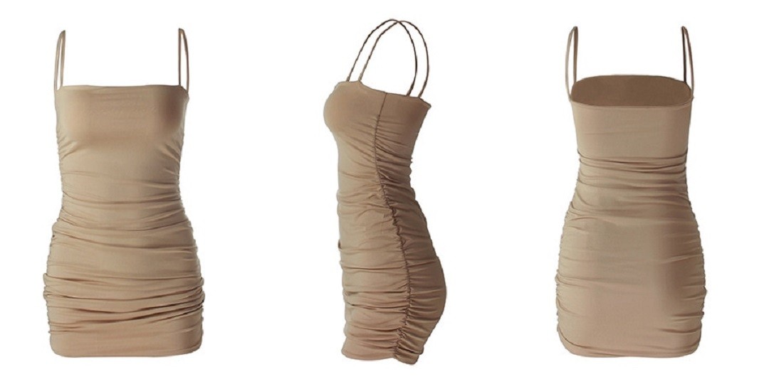 Vestido mini sexy para senhora com alças spaghetti.