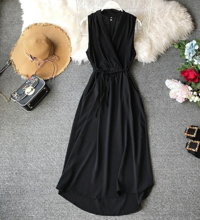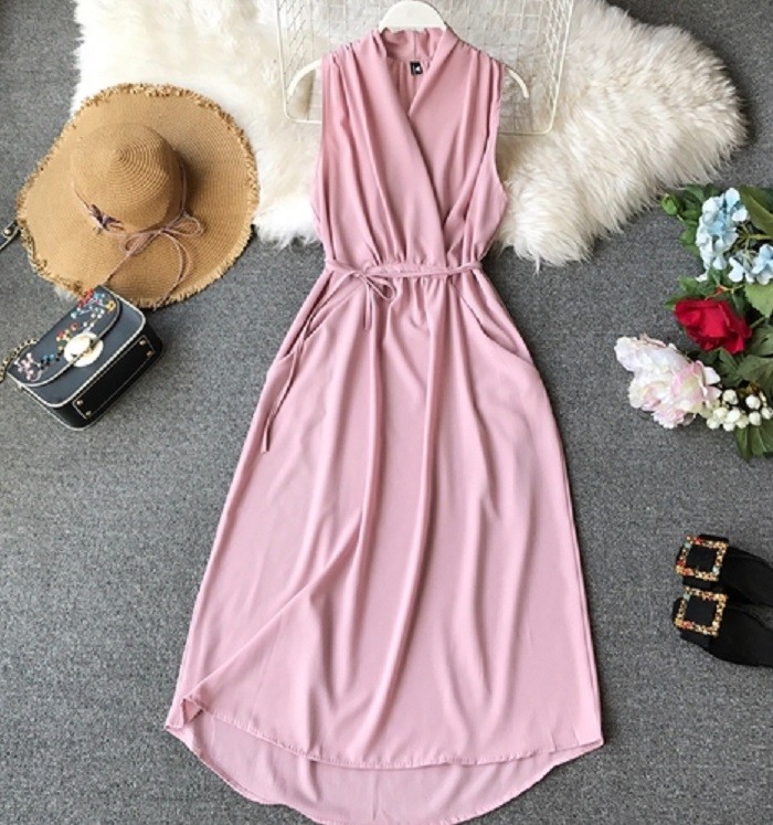 Vestido liso sem mangas