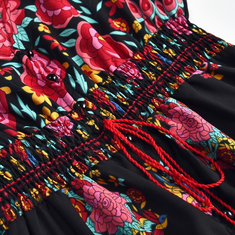 Vestido longo feminino com padrão floral