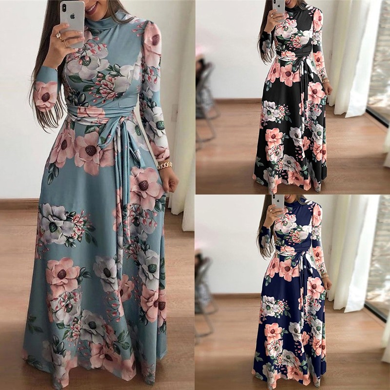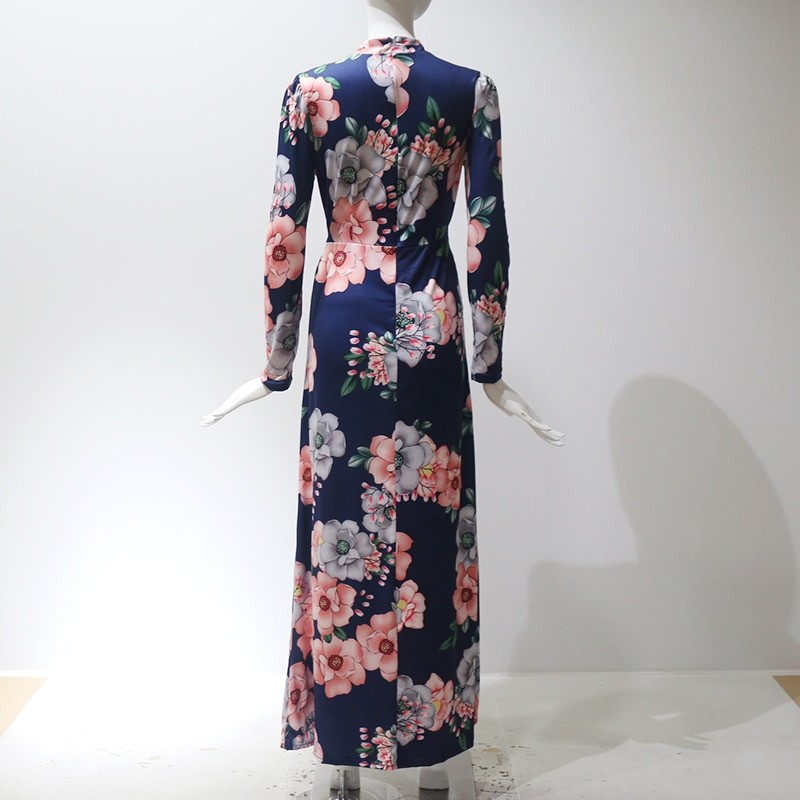 Bonito e confortável vestido maxi com um padrão floral marcante.