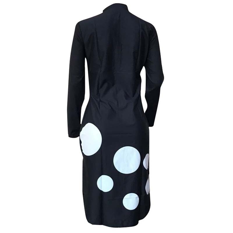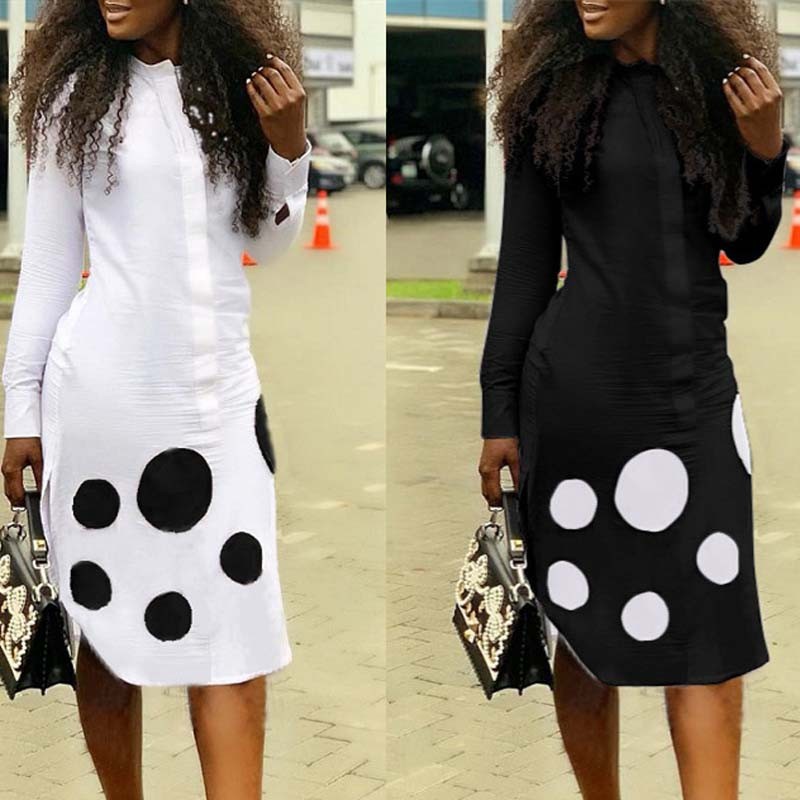 Vestido de camisa feminino com gola, na altura abaixo dos joelhos.