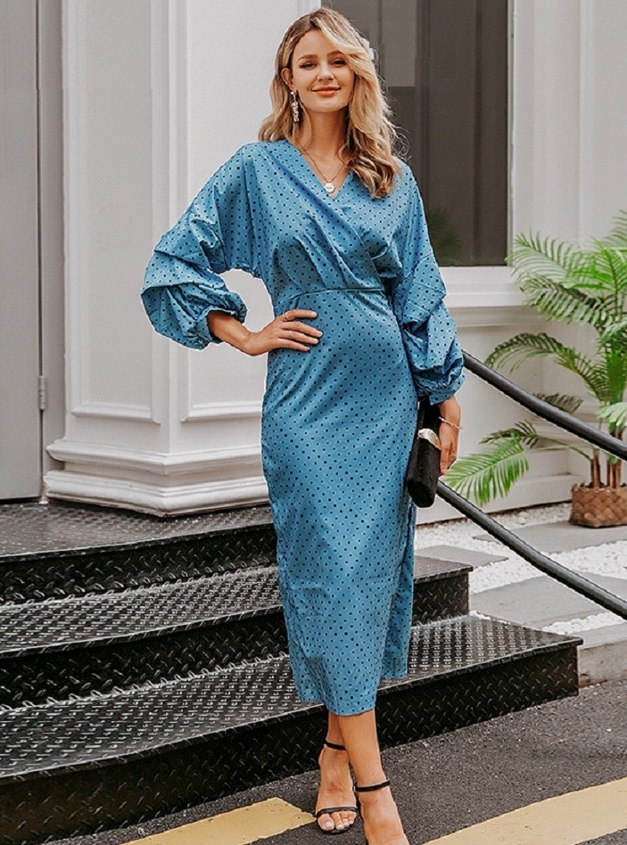 Vestido midi elegante com bolinhas