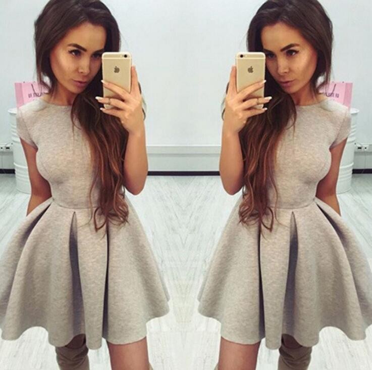 Vestido curto elegante com saia alargada.