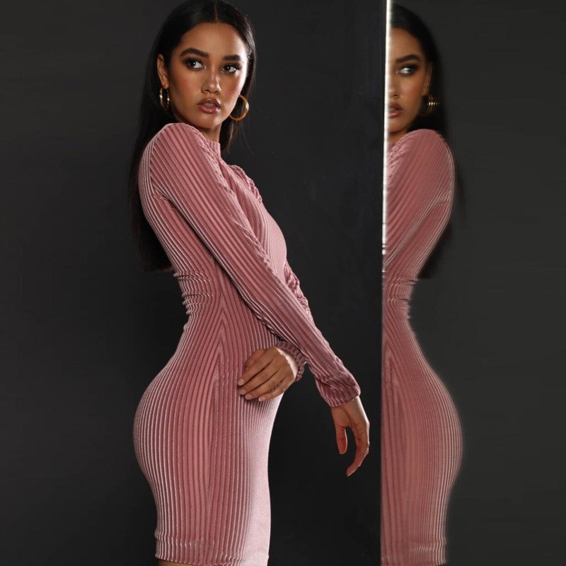 Vestido mini de luxo com mangas longas