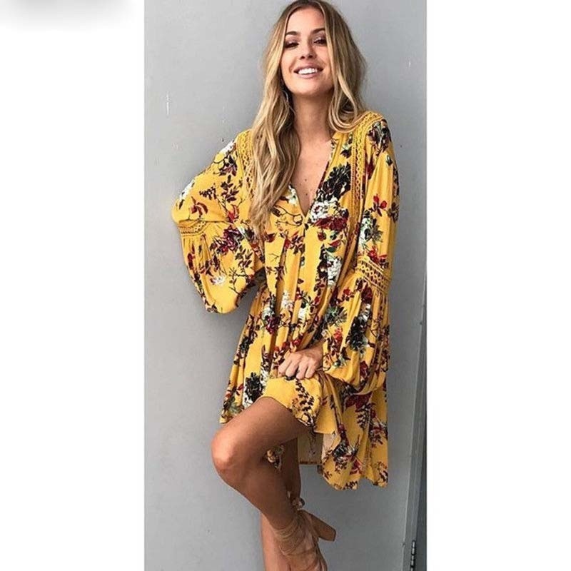 Vestido mini de verão para mulheres com mangas longas.