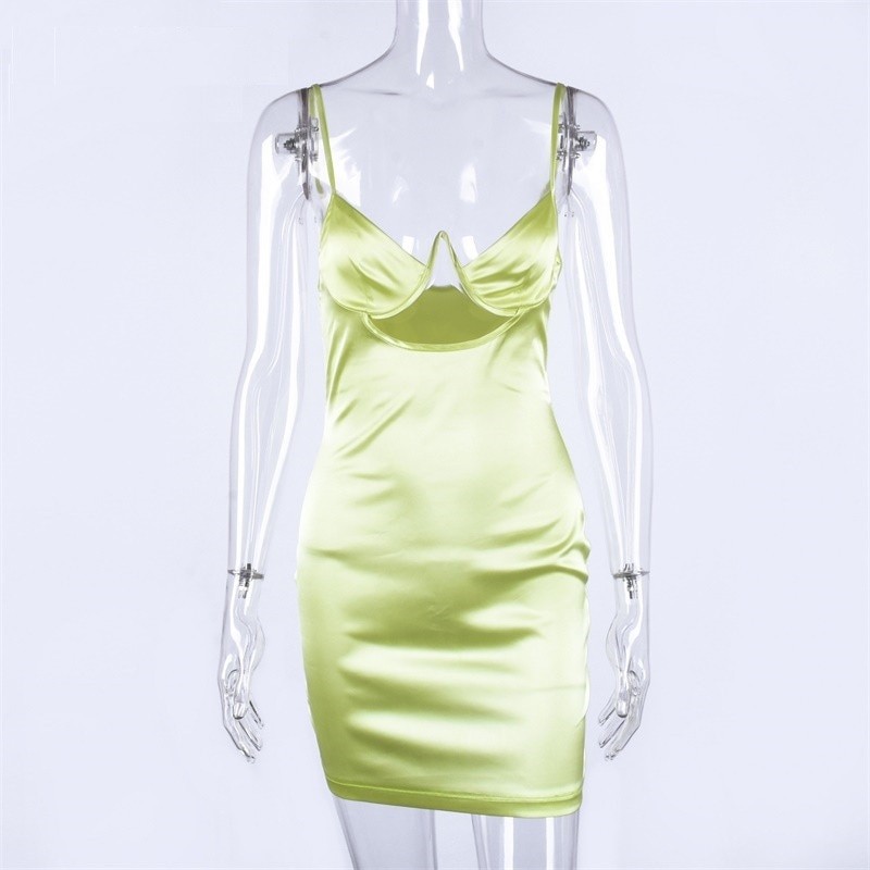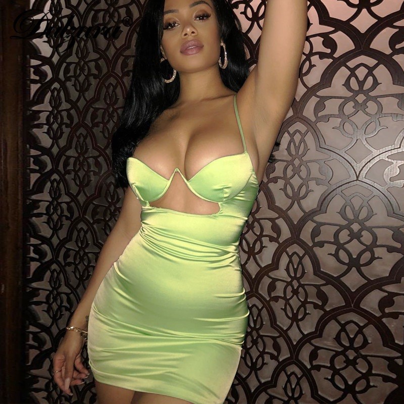 Vestido mini sexy com aros em alças finas.