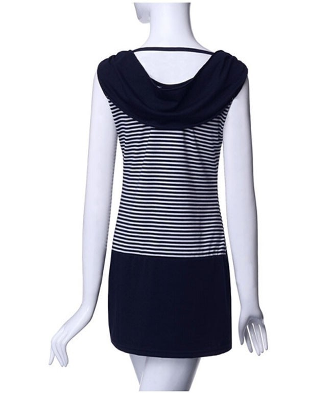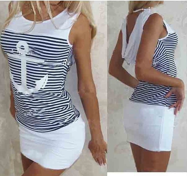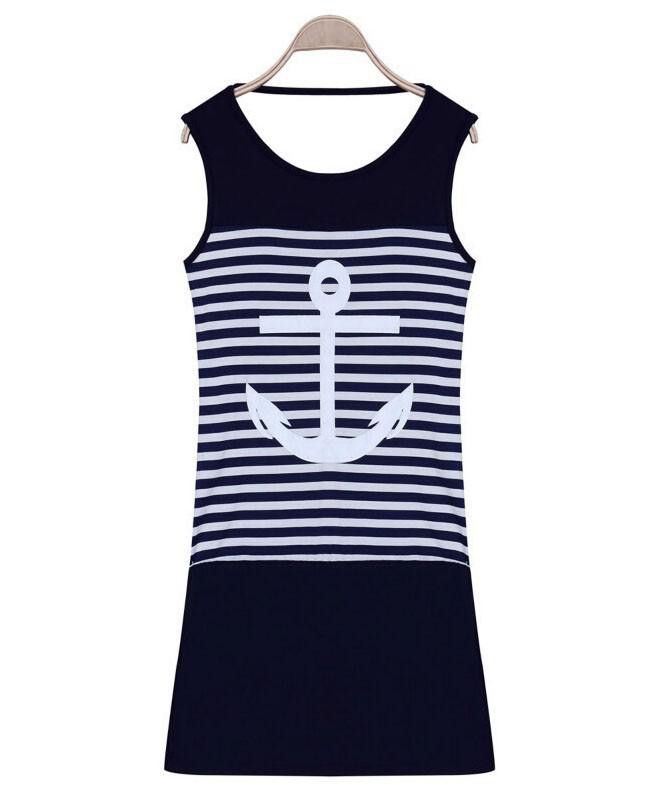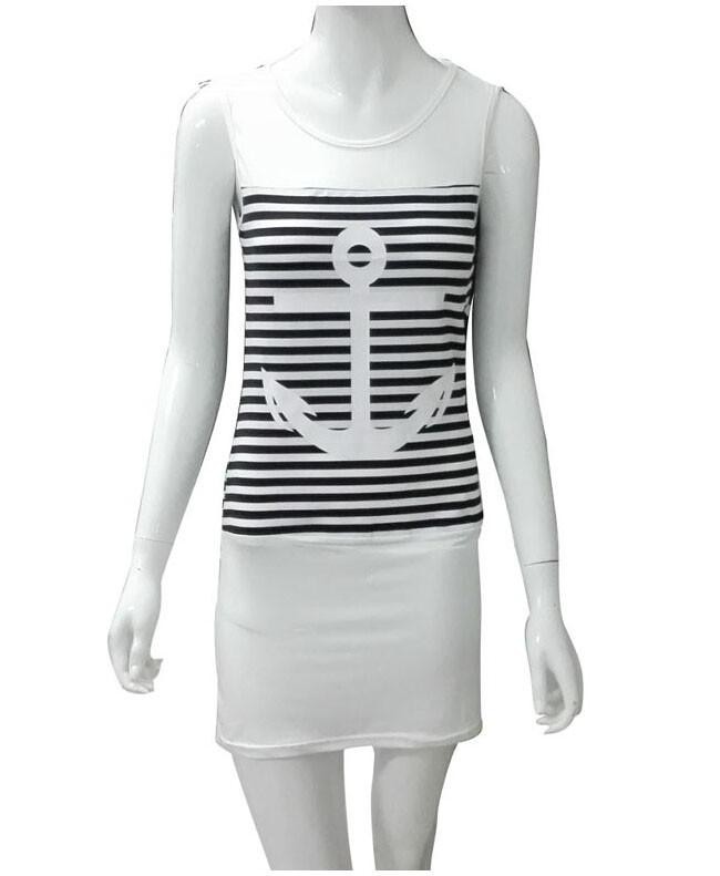 Vestido desportivo feminino com riscas e âncora.