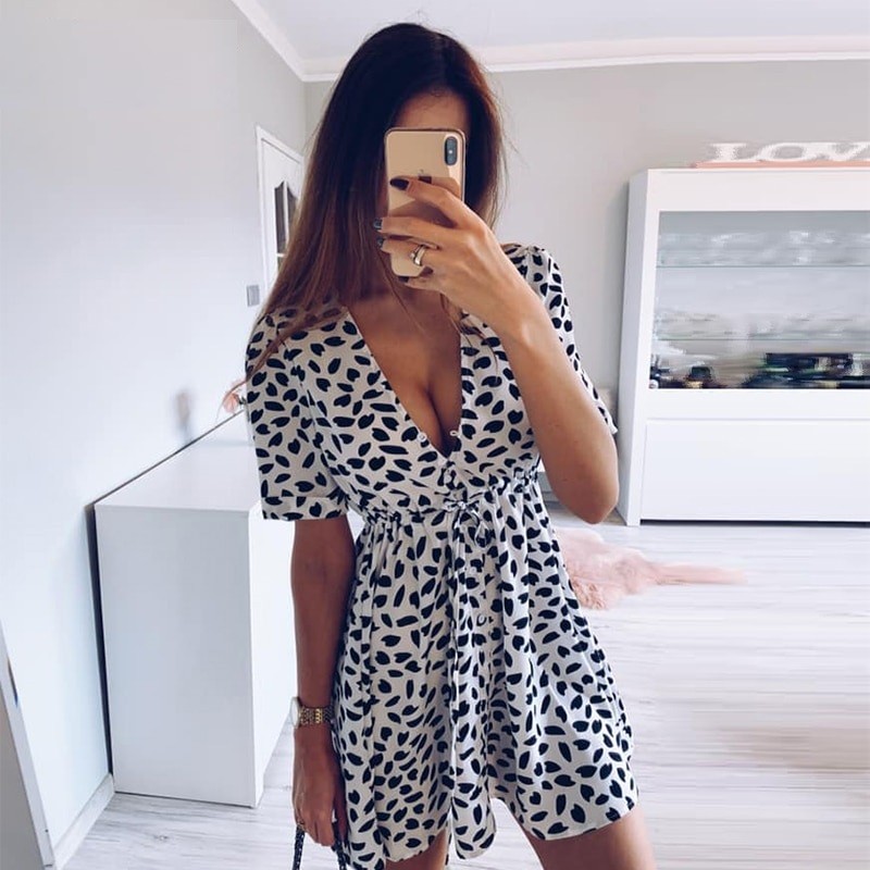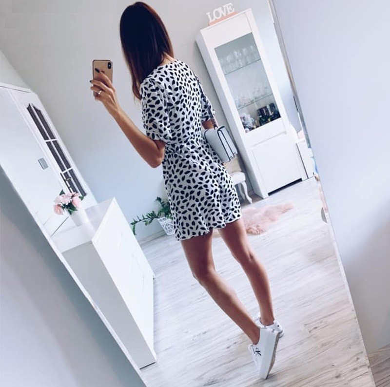 Vestido mini preto e branco para senhora