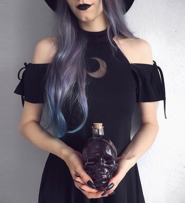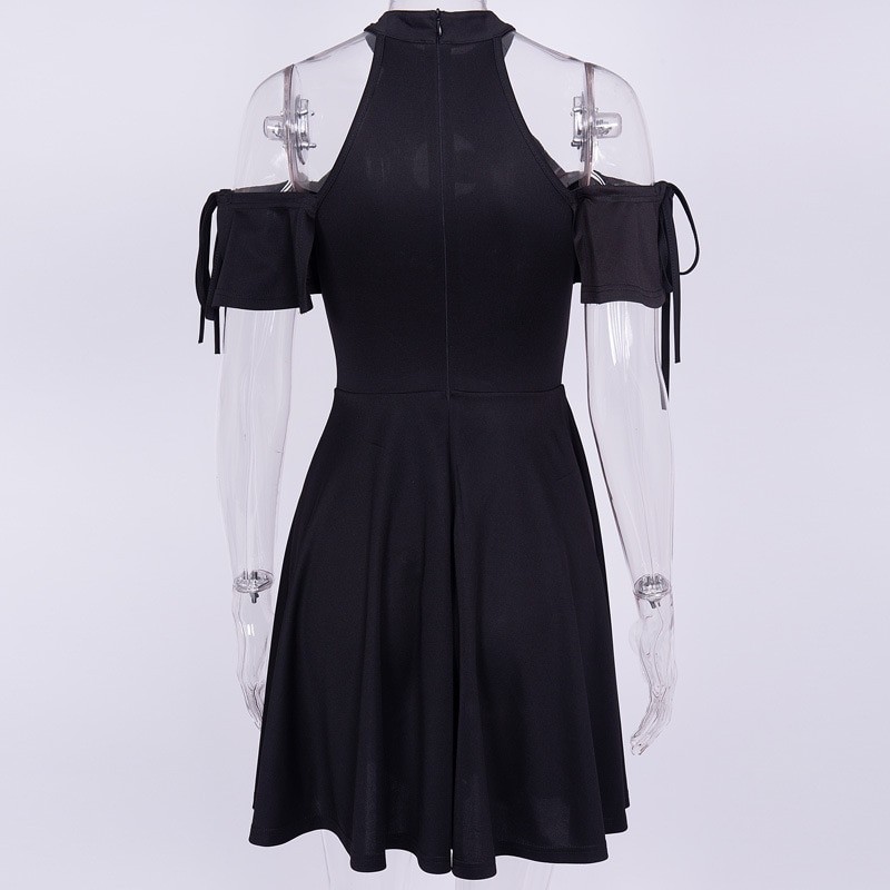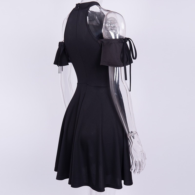 Vestido mini preto para senhora em estilo gótico extravagante.