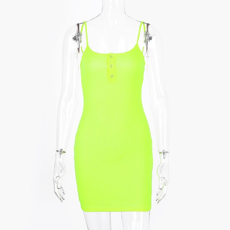 Vestido mini de verão em tecido elástico com decote em botões.