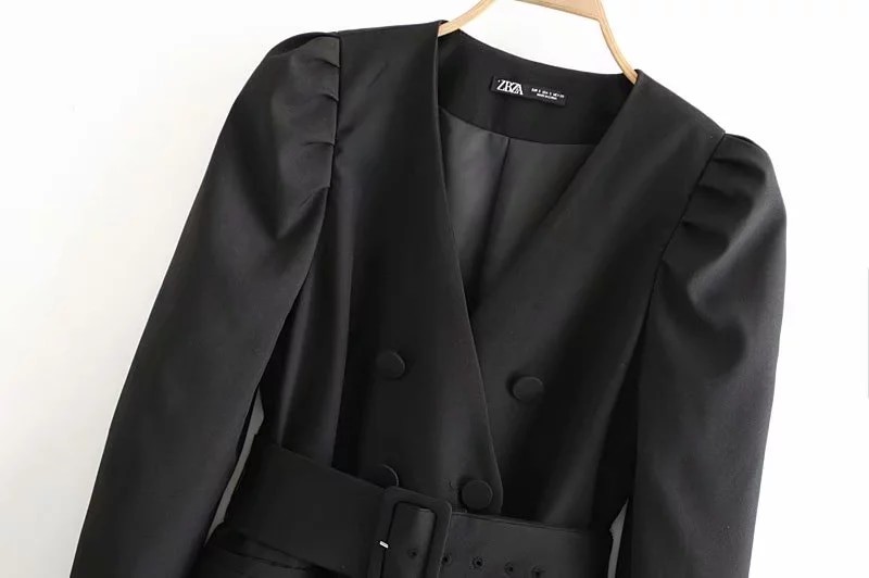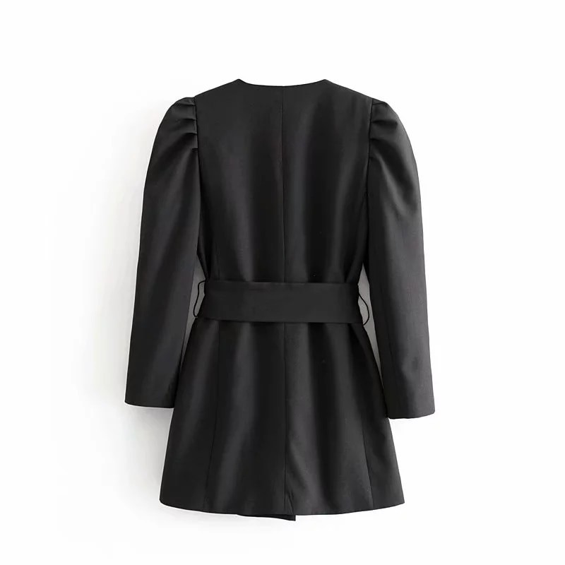 Elegante vestido de blazer feminino com cinto.