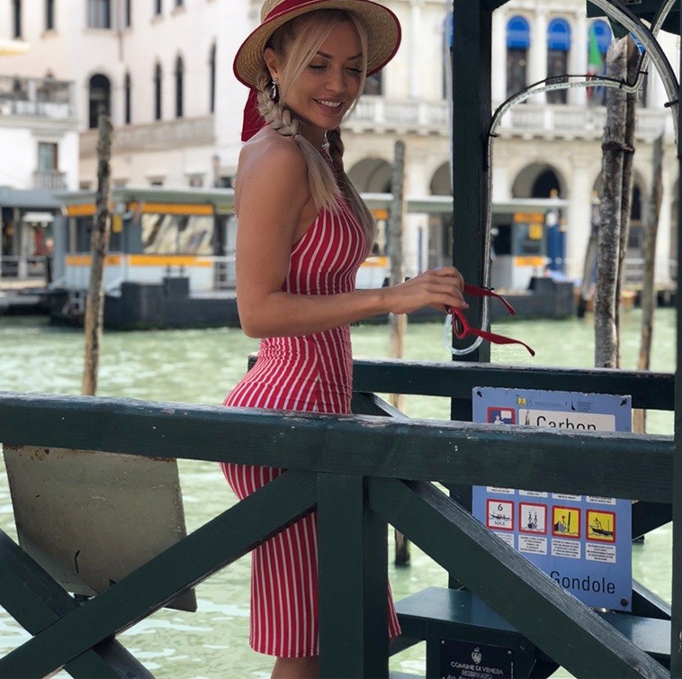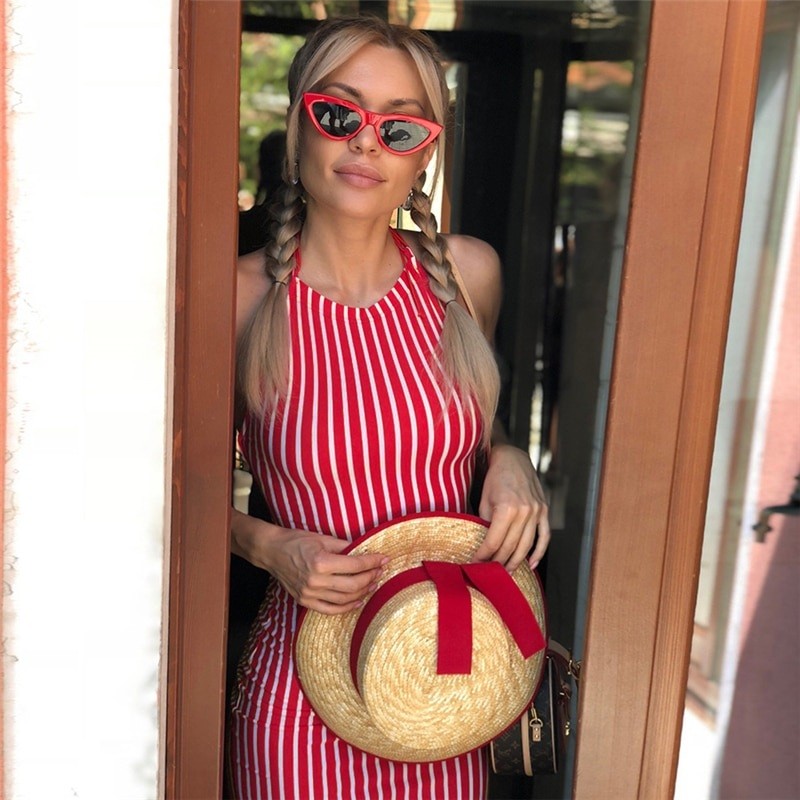 Vestido com padrão riscado de verão.