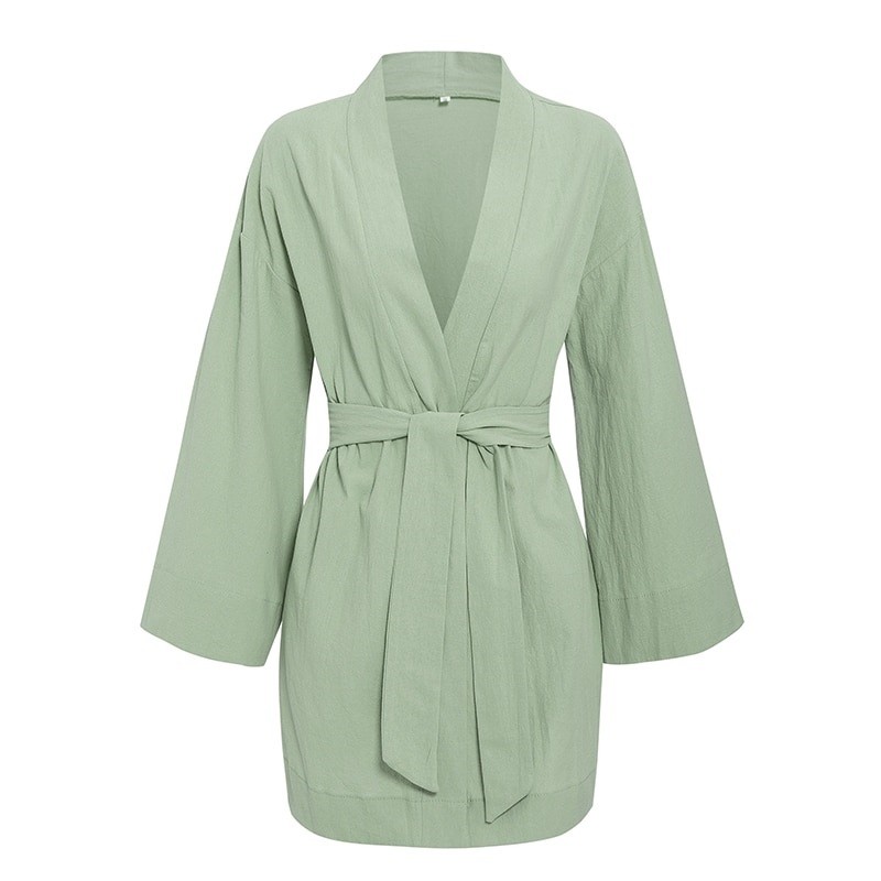 Mangas largas e corte em estilo japonês.