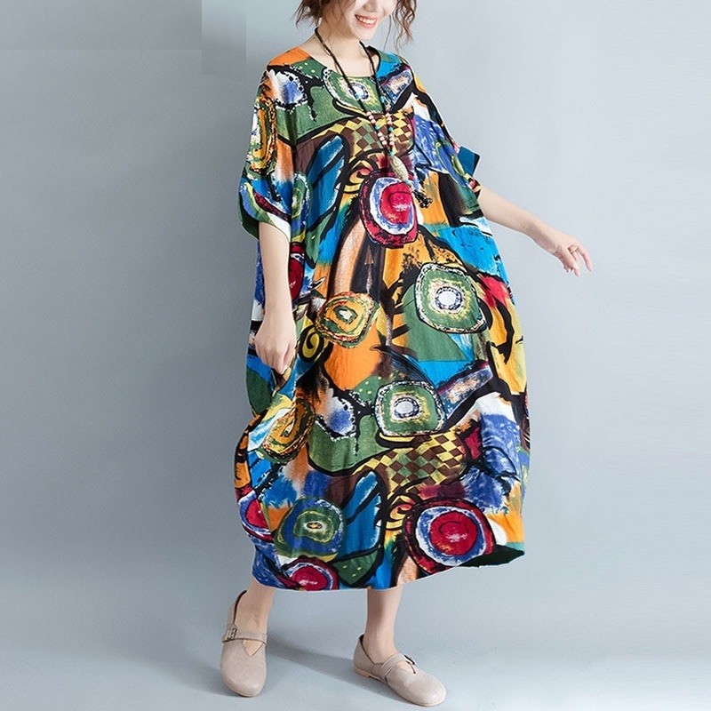 Vestido feminino em corte solto de túnica.