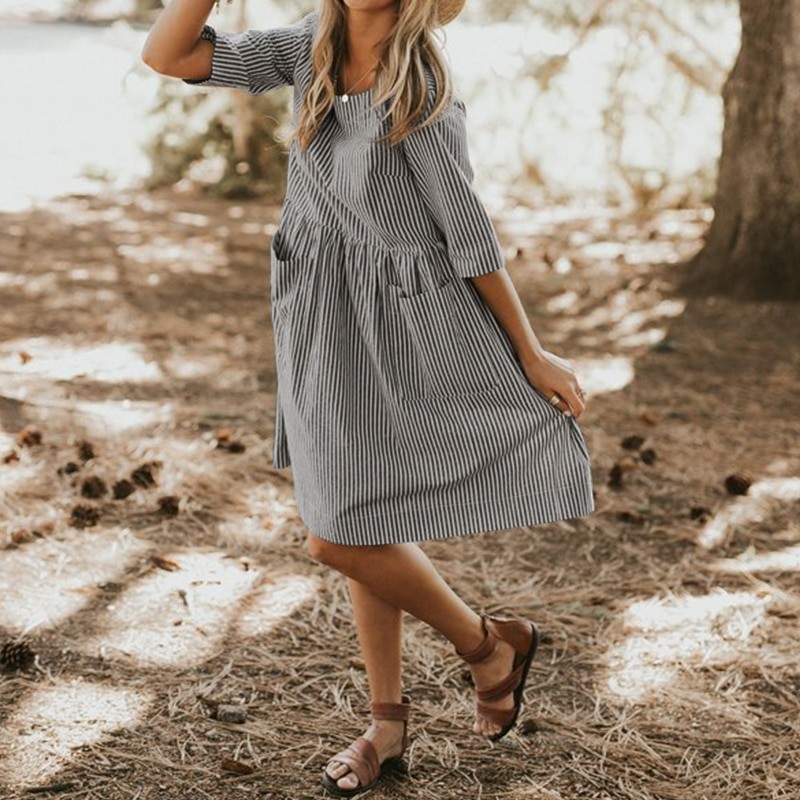 Vestidos femininos com mangas curtas e bolsos.