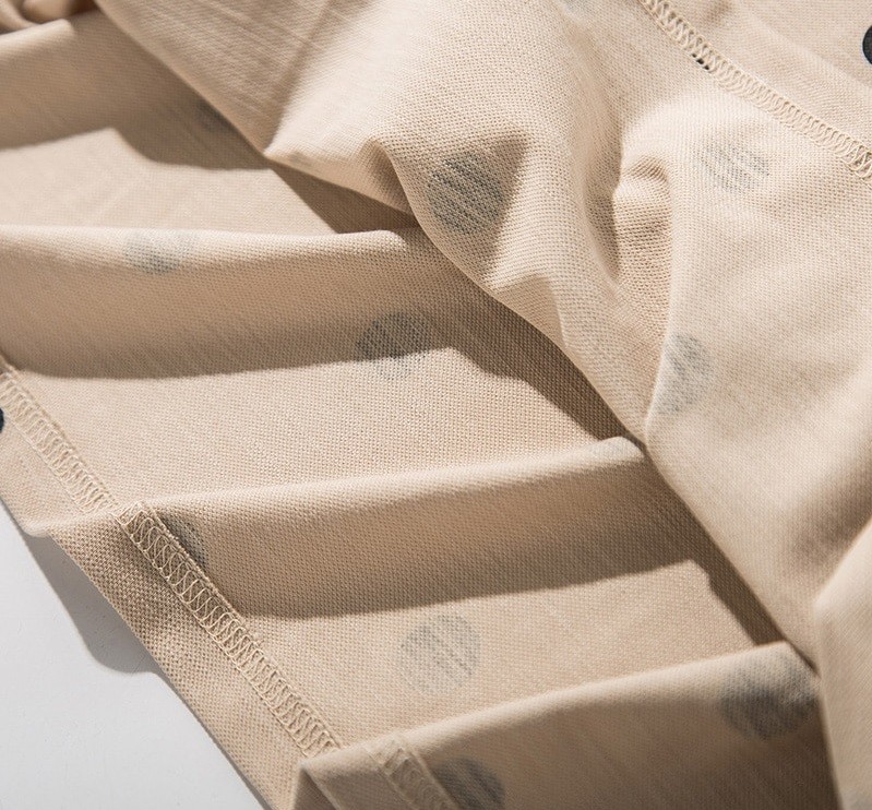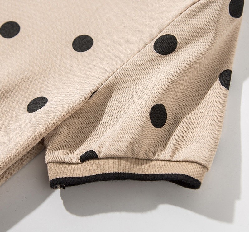 Mangas curtas e decote clássico de camisa polo com colarinho.