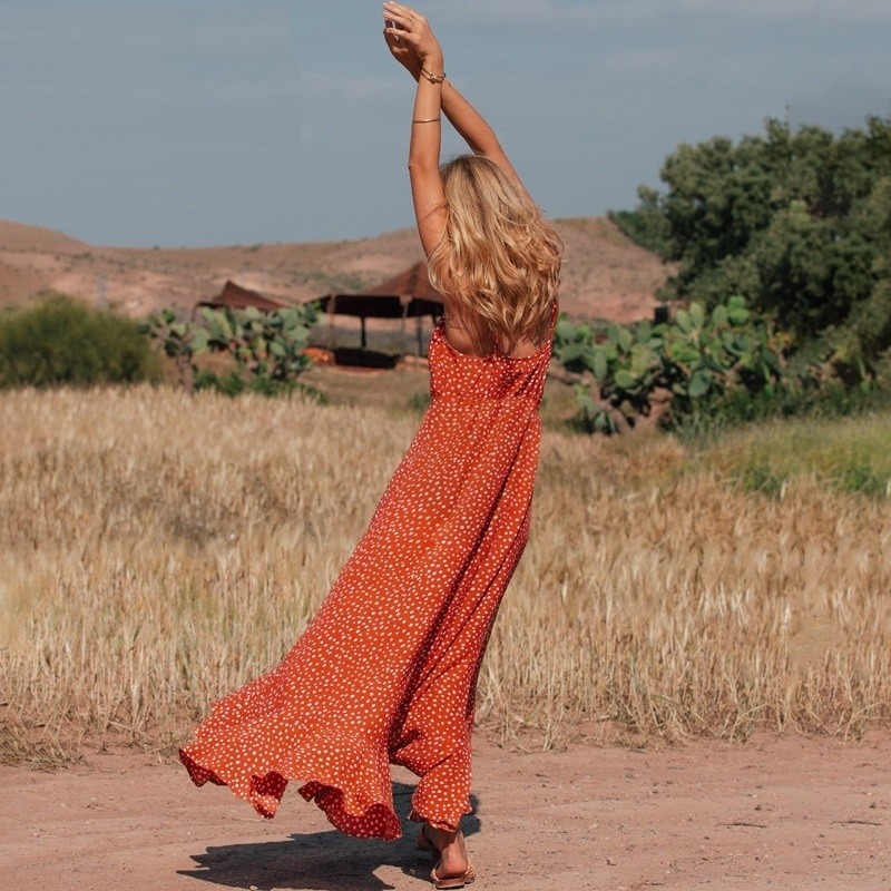 Vestidos longos de verão para mulheres. Corte assimétrico e alças finas ajustáveis.