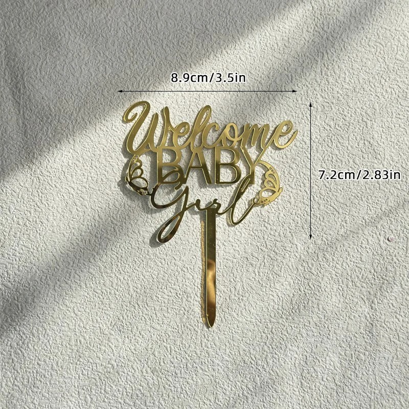 Zápich para bolo com a inscrição Bem-vindo bebé com borboletas Decoração para bolo para menina 8,9 x 7,2 cm